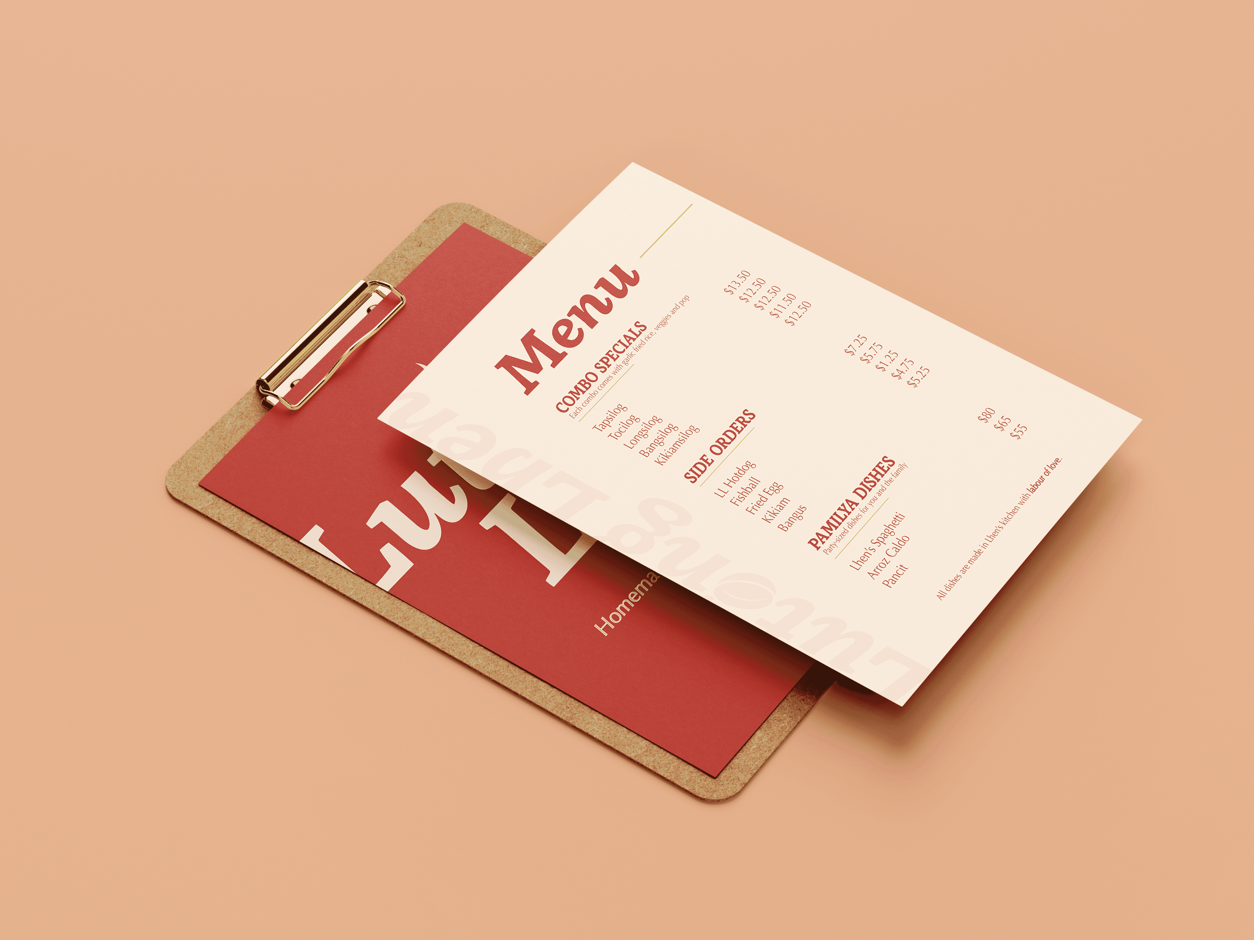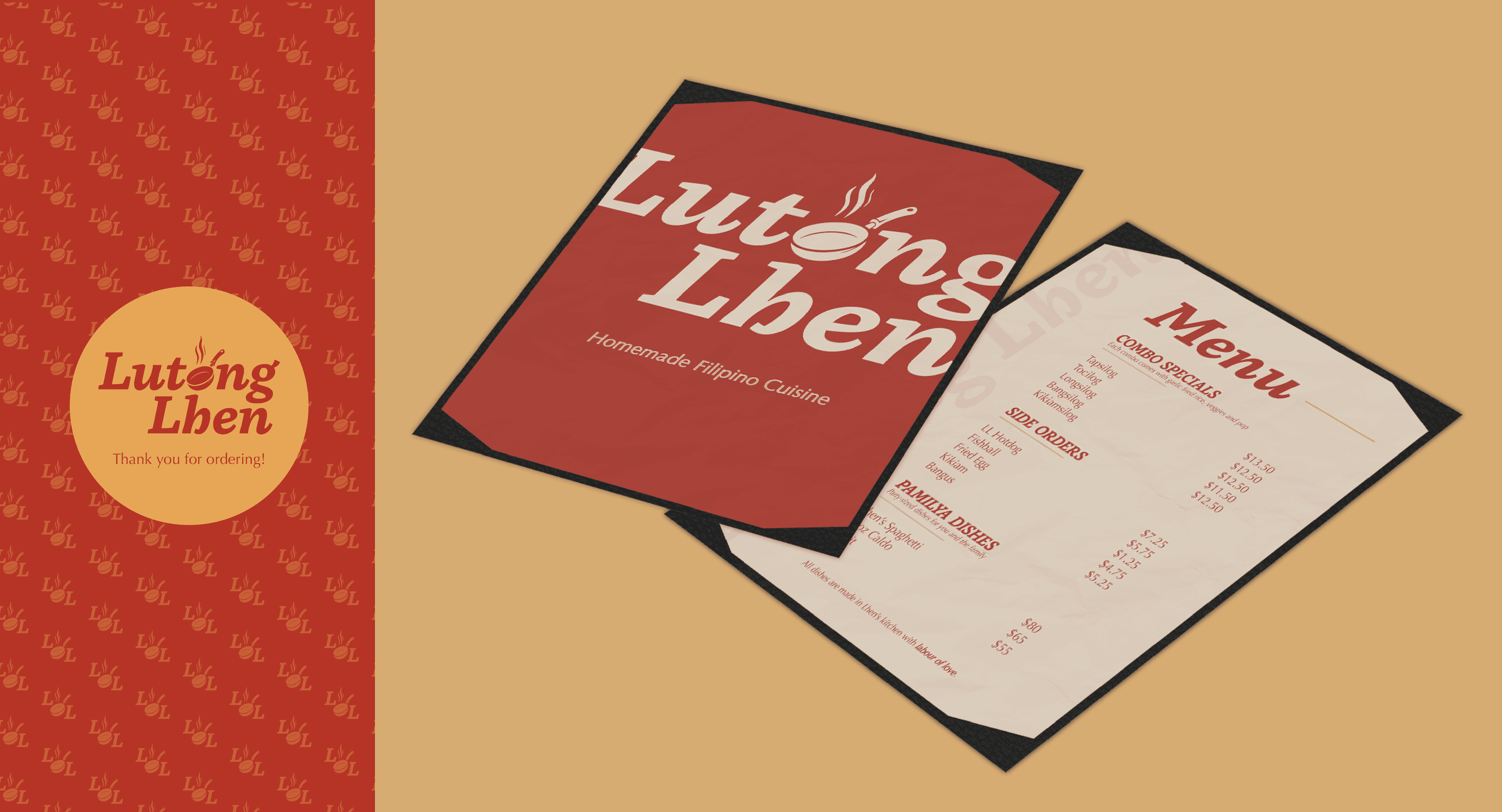I was asked to create a complete brand identity for Lutong Lhen, building the visual foundation of the business from the ground up. This included developing a cohesive branding kit that tells Lhen’s story and captures the warmth and authenticity of her cooking. In addition to the brand identity, I designed key print materials such as menus and packaging, ensuring the brand experience felt consistent and comforting across every touchpoint. The goal was to create a visual identity that feels welcoming and memorable—one that instantly reminds customers of home while celebrating Filipino cuisine made with love.